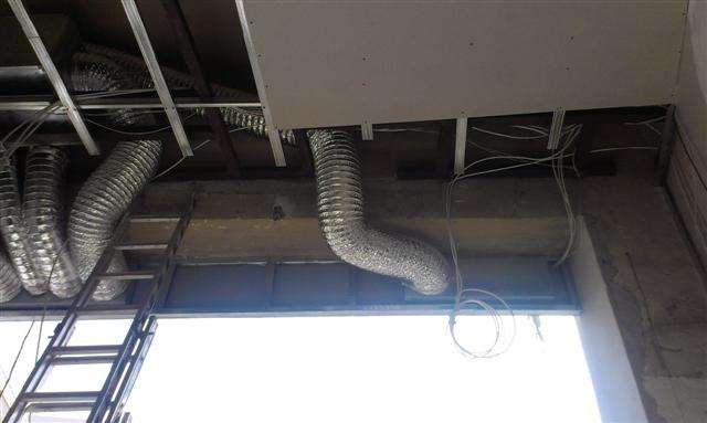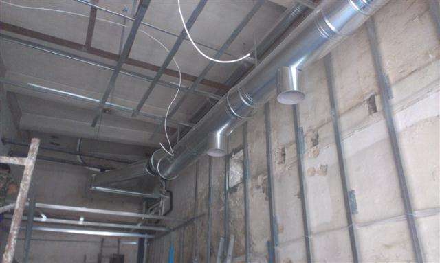 Οι Αεραγωγοί Χανίων ανέλαβαν την κατασκευή και εγκατάσταση σε υπό ανέγερση πιτσαρίας στο κέντρο των Χανίων , δικτύου αεραγωγών κλιματισμού κυκλικής διατομής με εσωτερική μόνωση και εξαερισμού ορθογώνιας διατομής με τμήματα εύκαμπτων οδευτών.