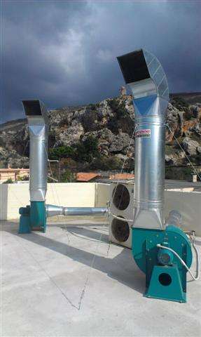 Στην παρούσα εφαρμογή εγκαταστήσαμε εκτός από το δίκτυο εξαερισμού , στην έξοδο των ανεμιστήρων , ηχοπαγίδες για την μείωση του θορύβου του συστήματος.