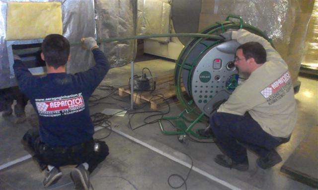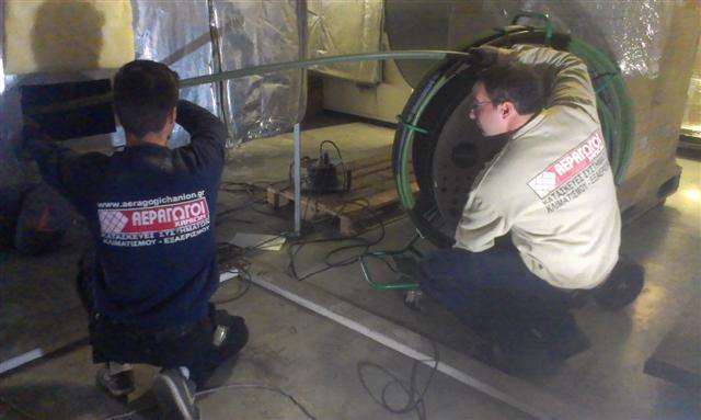 Η εταιρία “ΝΕΡΑ ΚΡΗΤΗΣ ΑΒΕΕ” μας εμπιστεύτηκε τον καθαρισμό του κεντρικού δικτυού προσαγωγής κλιματισμού. Με την ειδική κάμερα ρομπότ καταγράφηκε η κατάσταση εντός των αεραγωγών, πριν, κατά την διάρκεια και μετά τον καθαρισμό. Με τον εξοπλισμό μας , εισάγαμε μια ειδική περιστρεφόμενη βούρτσα εντός του συστήματος και με την ηχοαπορροφητική σκούπα απορροφήθηκαν τα κατάλοιπα που ήταν προσκολλημένα στα τοιχώματα των αγωγών.