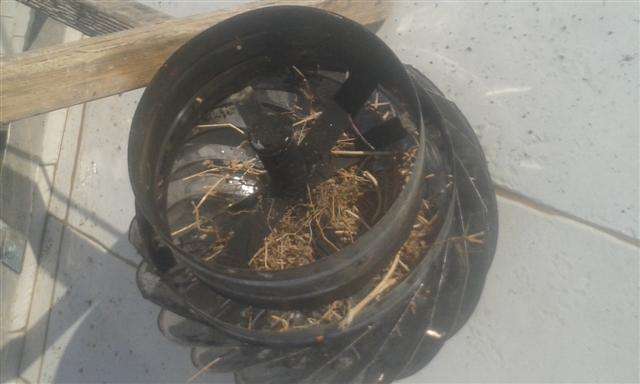 Και σε άλλη καμινάδα τζακιού, βρέθηκε εντός του περιστρεφόμενου καπέλου μια φωλιά πουλιού, η οποία βεβαίως και απομακρύνθηκε.