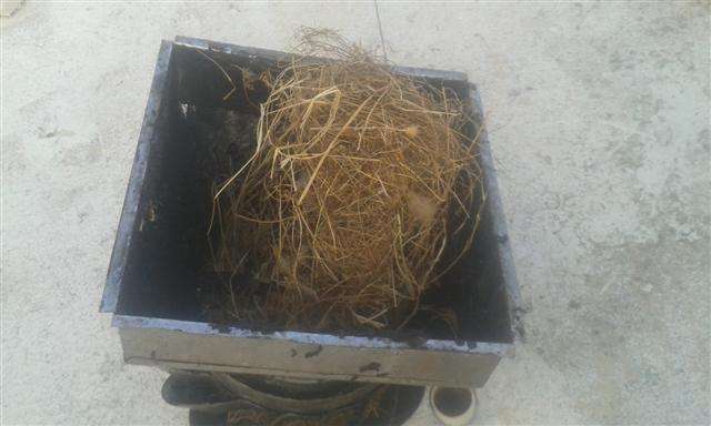 Και σε άλλη καμινάδα τζακιού, βρέθηκε εντός του περιστρεφόμενου καπέλου και στην καμινάδα μια φωλιά πουλιού, η οποία βεβαίως και απομακρύνθηκε. Παραθέτουμε και τα κατάλοιπα μετά τον καθαρισμό εντός της εστίας.