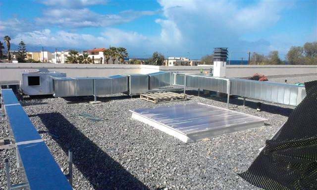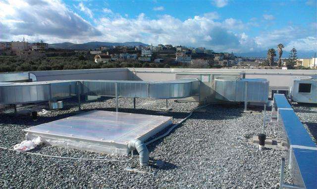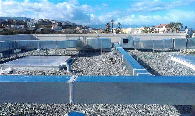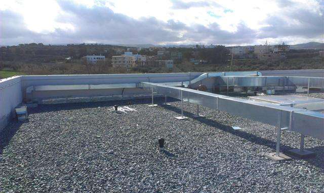 Στην ανέγερση του νέου Γυμνασίου – Λυκείου στην περιοχή Σακάκι Ρεθύμνου, περατώσαμε την τοποθέτηση του δικτύου αεραγωγών που μας ανατέθηκε, από γαλβανιζέ ελάσματα ορθογώνιας διατομής στην οροφή και στο εσωτερικού του κτηρίου.