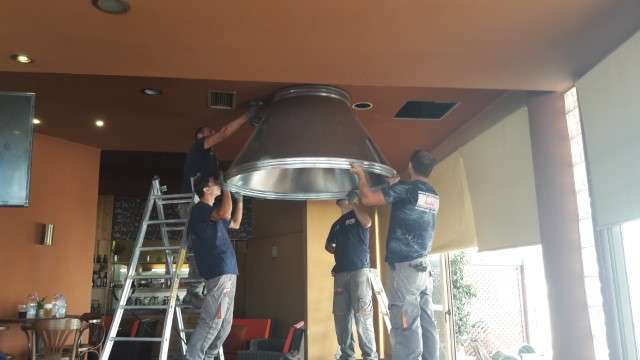 Κατασκευή και τοποθέτηση δικτύου απαγωγής καυσαερίων ψησταριάς αντικριστού - τζακιού σε εστιατόριο ‘ΚΑΦΕΝΑΓΩΓΕΙΟ’  στο Κολυμβάρι Χανίων .